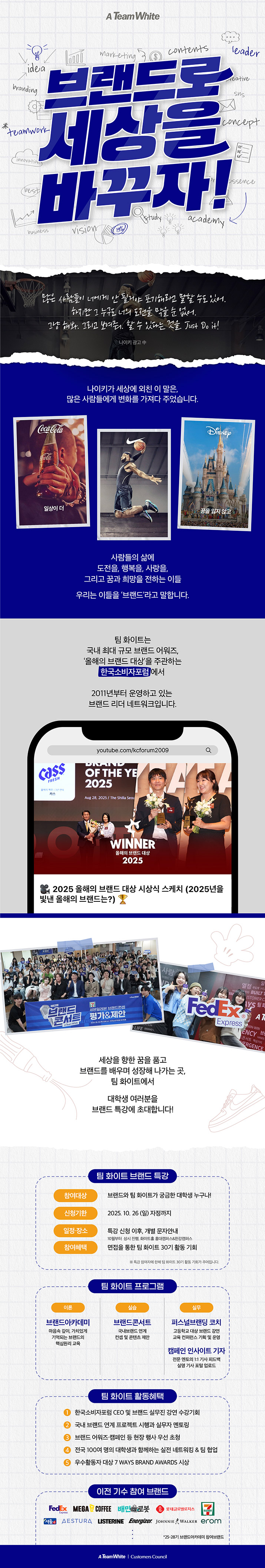 ÆÀÈÀÌÆ®´Â ºê·£µåÀÇ °¡Ä¡¸¦ ¹è¿ì°í Á÷Á¢ ±âȹ¡¤½ÇÇàÇÏ¸ç ½Ç¹« °¨°¢À» Ű¿ï ¼ö ÀÖ´Â ÇÁ·Î±×·¥À̶ó°í ¾Ë°í ÀÖ½À´Ï´Ù. ÀÌ È°µ¿À» ÅëÇØ ¿©·¯ ºê·£µåµéÀÇ Àü·«°ú ½ºÅ丮¸¦ ±íÀÌ ÀÌÇØÇÏ°í ¼ÒºñÀÚ Áß½ÉÀÇ ½Ã°¢À¸·Î ºê·£µå¸¦ ¹Ù¶óº¸´Â ¿ª·®À» ±â¸£°í ½Í½À´Ï´Ù.